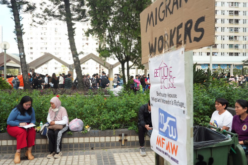 “They’re the backbone of the Hong Kong economy but they’re voiceless, so we’re doing what we can to find them and make sure they’re okay,” said one Hong Kong social worker, who carried a bag of food and clothes but declined to be named.