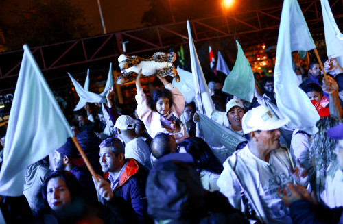 “It’s up to us to build the third republic,” Fernandez told flag-waving supporters in San Jose. At the Hispanidad Fountain, a popular national celebration point for sporting or political events, Fernandez supporters gathered by car and on foot, waving flags and stuffed jaguars, a symbol adopted by Fernandez’s party.